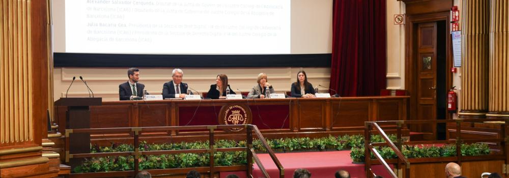 La celebración de los “Diálogos del Día de la Privacidad” ha sido inaugurada por Lorenzo Cotino, presidente de la AEPD; Meritxell Borràs, directora de la APDCAT; Cristina Vallejo, decana del ICAB; y en la mesa presidencial del acto, también ha contado con Alexander Salvador, diputado de la Junta de Gobierno del ICAB, y Júlia Bacaria, presidenta de la Sección de Derecho Digital e IA del ICAB.